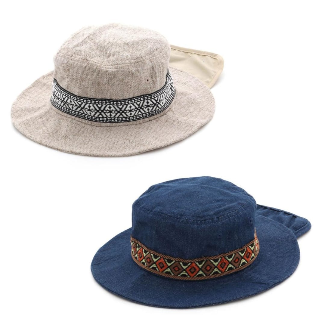 ソフトなかぶり心地の日よけ付きのアウトドアハットです。