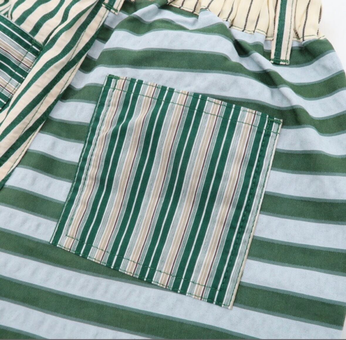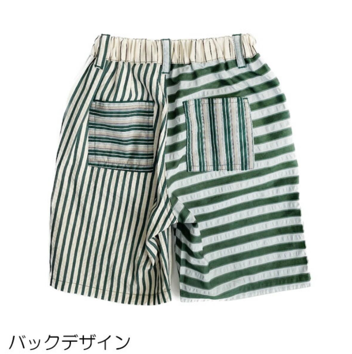 左右でボーダー柄とストライプ柄を切り替えた5分丈パンツ。