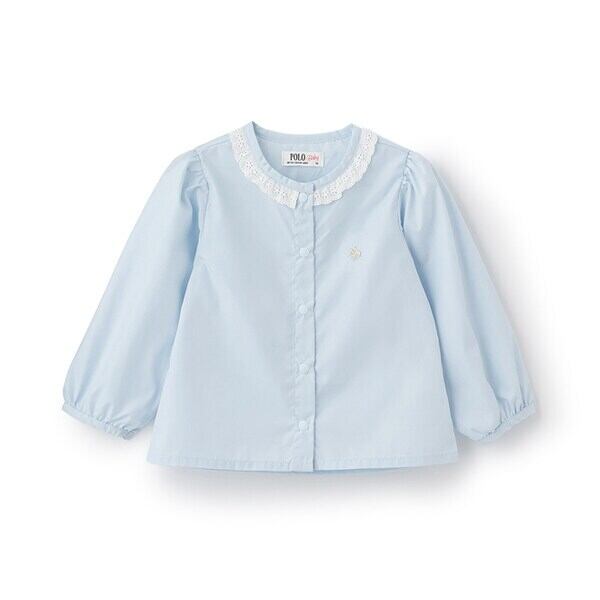衿ぐりのレースフリルが可愛らしいブラウスです。