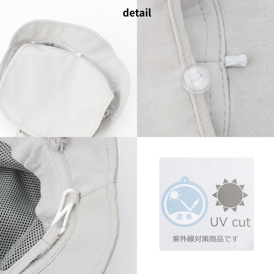 アジャスター付きの首紐で風対策も忘れずに