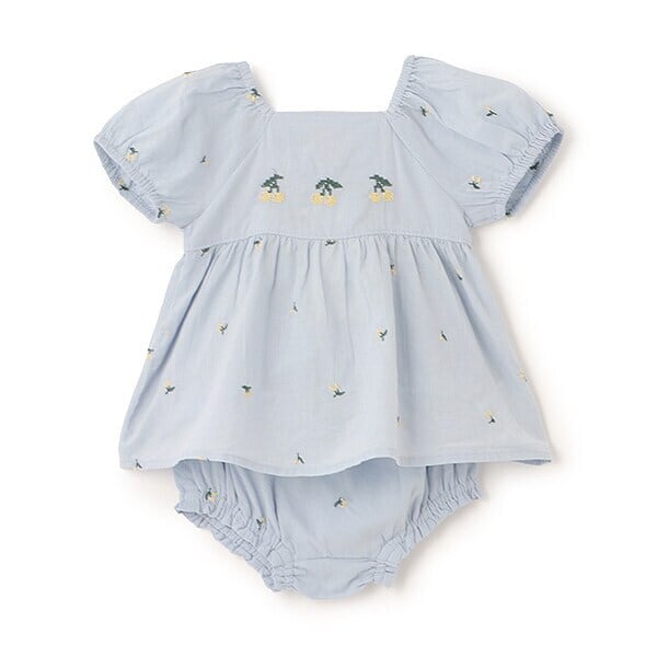 全体にチェリー刺しゅうをちりばめた可愛いセットアップです。