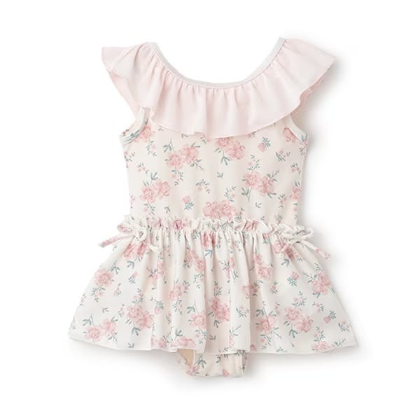 キュートな総柄とフリルの組み合わせが魅力あふれる水着です。