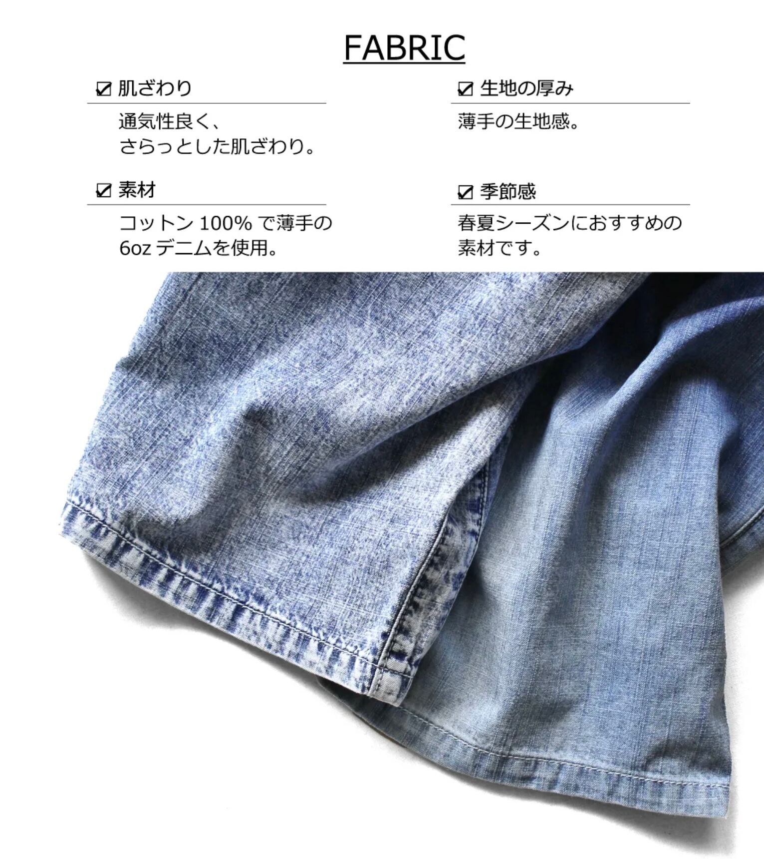 薄くて軽いライトオンスデニムを使用した、立体裁断クライマーハーフパンツ。