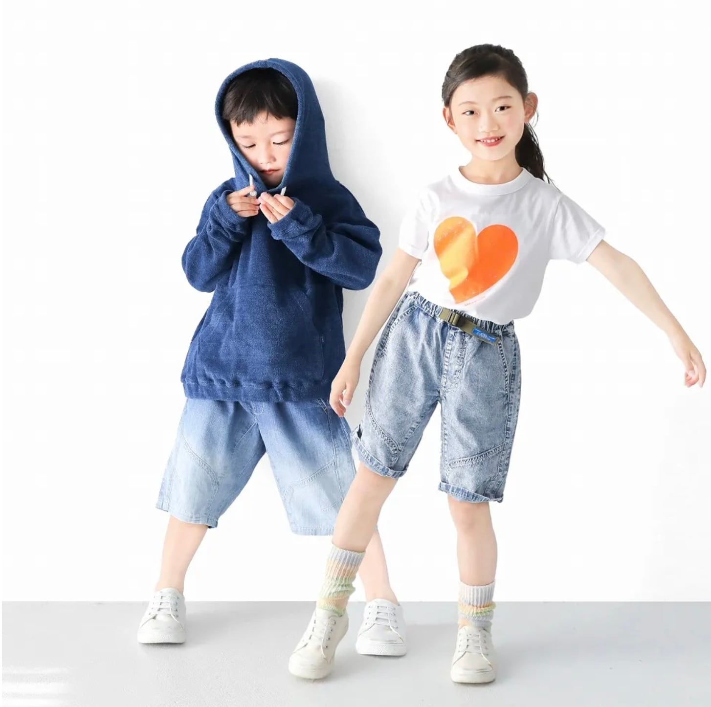 L.COPECK ≪50%オフ≫ ライトデニム切替えハーフ(100〜140cm) (品番C4347)