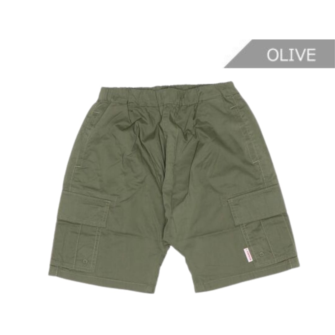 超薄手の平織りタイプライター素材で作ったゆったりシルエットのカーゴハーフパンツ。