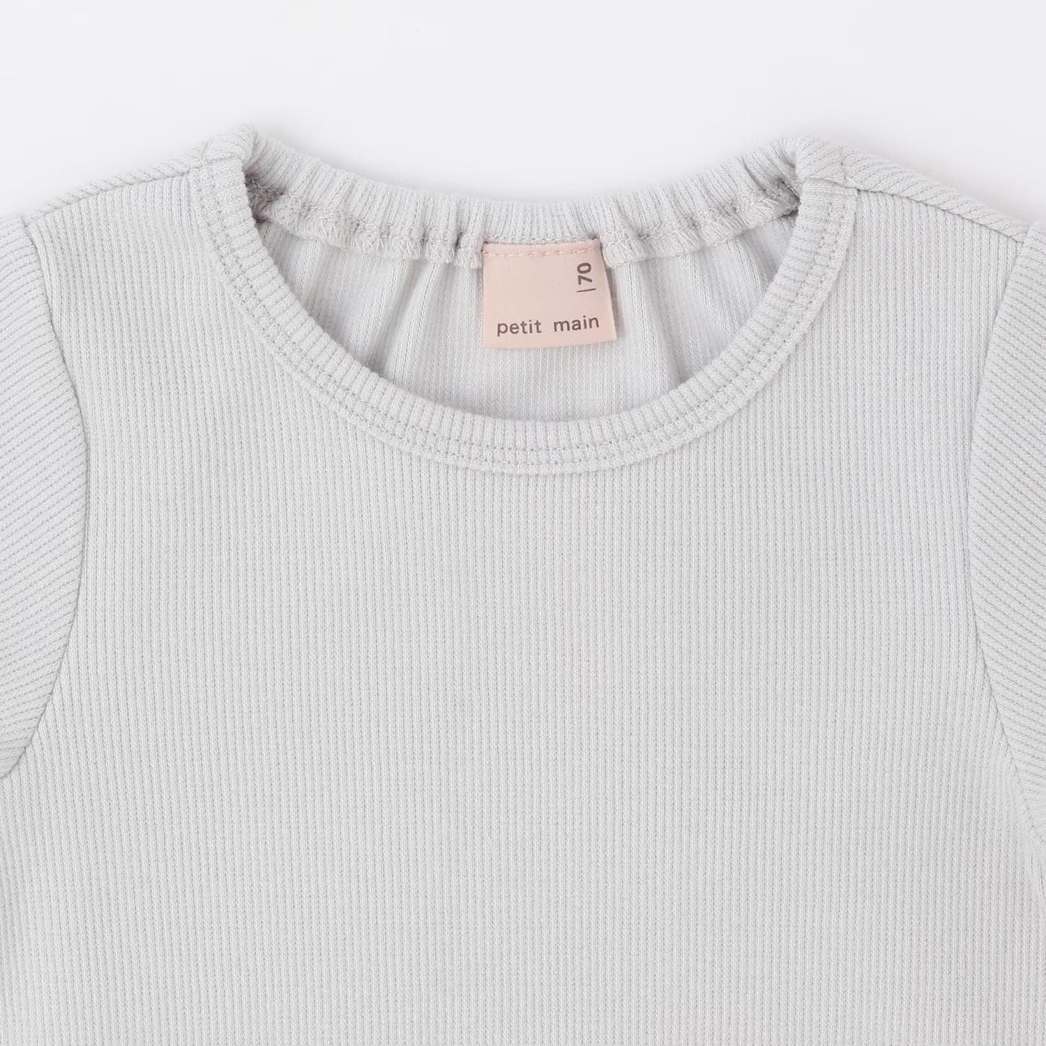 ロンパースの後ろ衿ぐりにゴムがはいっており、お着替えしやすいのも魅力。