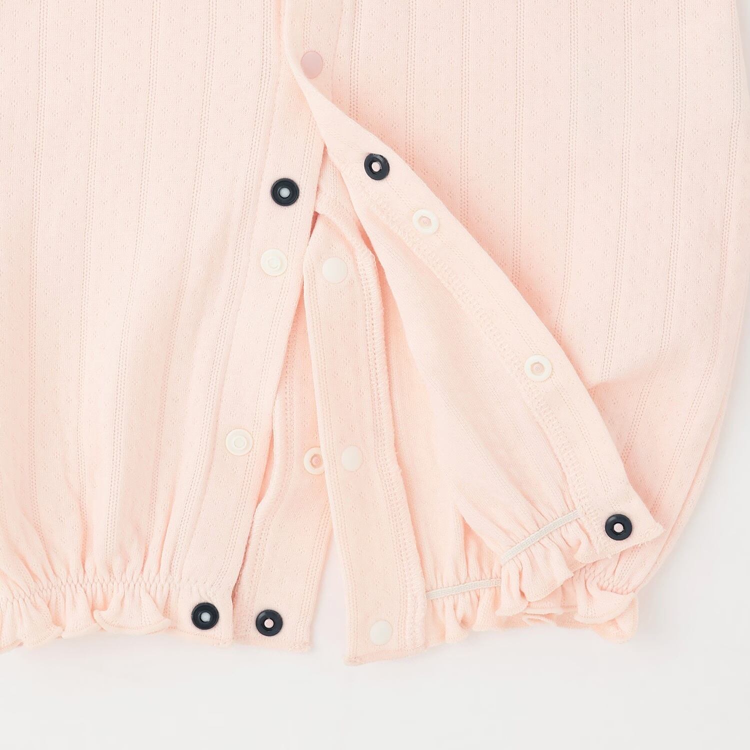 オーガニック素材を使用したペプラム切り替えのカバーオールです。