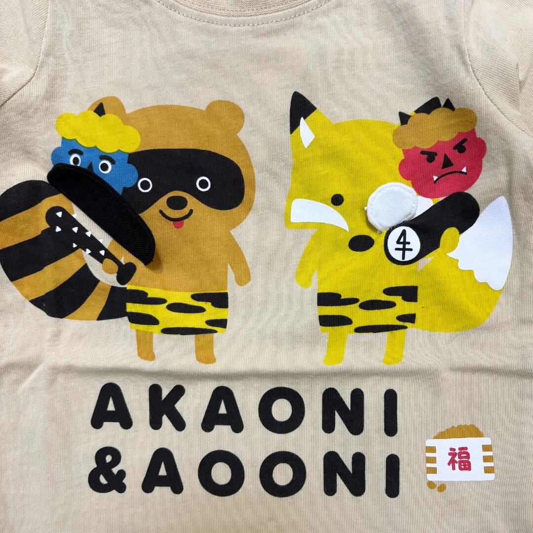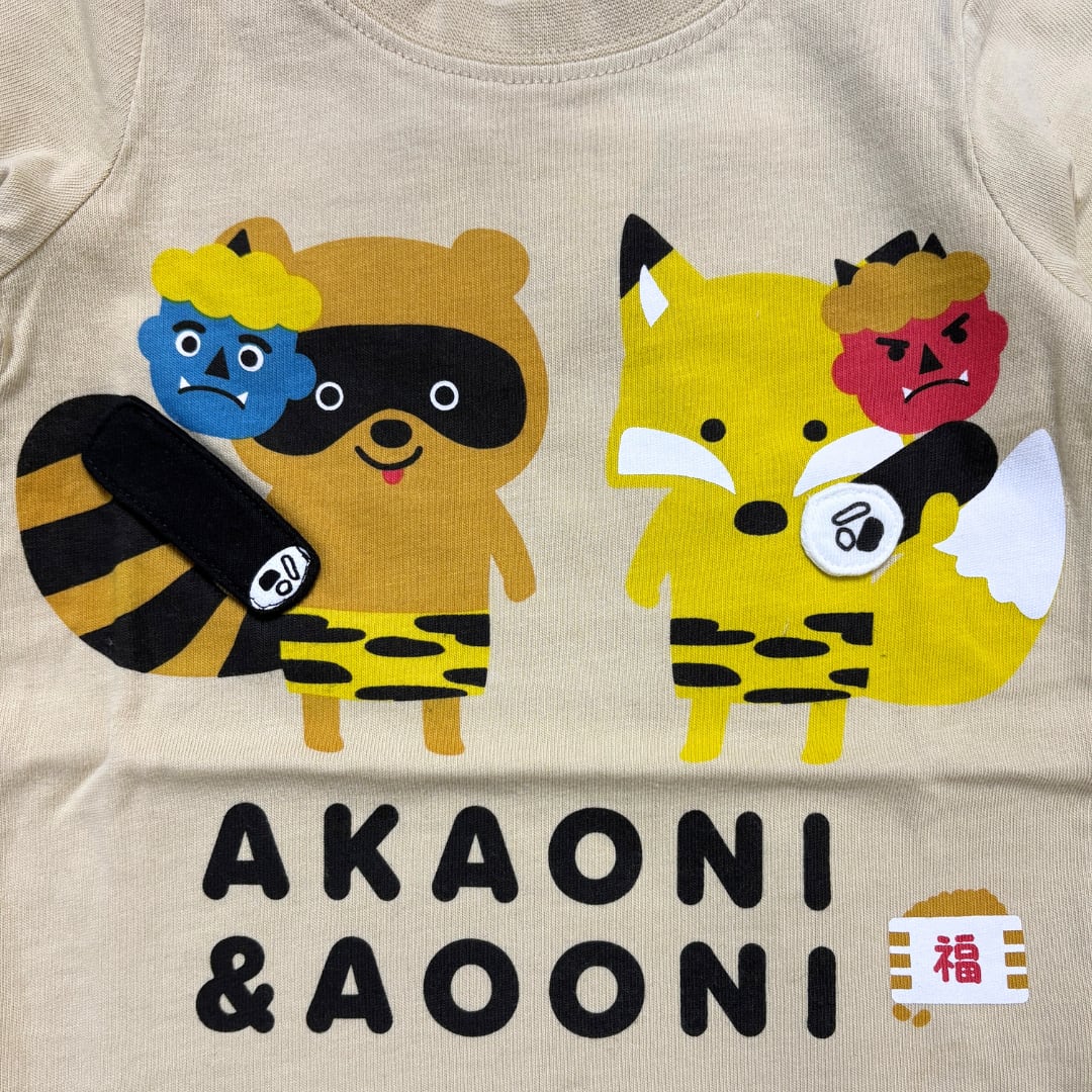 鬼は外!福は内!と聞こえてきそうなたぬきときつねのロンT。 恵方巻きがめくれます。中には何が隠れているでしょうか?? 節分の時やそれ以外でも着られます。