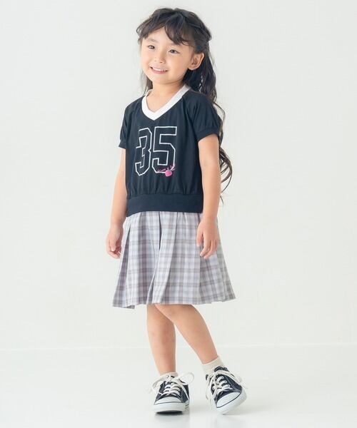 AIMABLE 【カレッジ風】ナンバリングロゴチェックプリーツワンピース (品番AM26ES006)