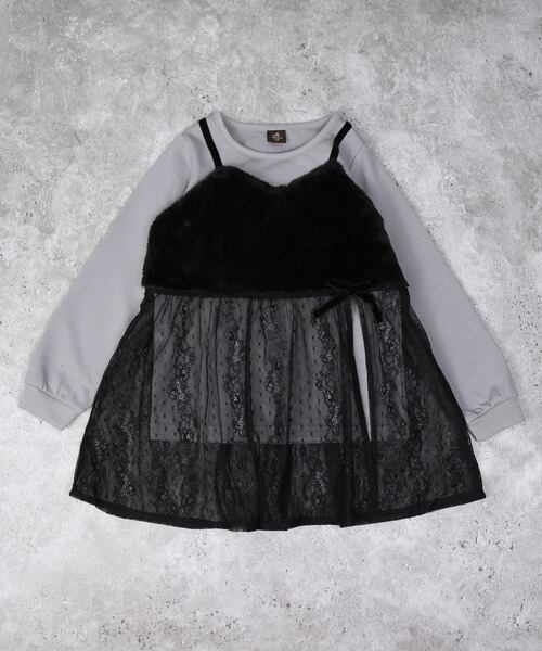 レース&フェイクファーのビスチェ風デザインが目を引く、1枚でレイヤードコーデが完成するおしゃれチュニック。本体は柔らかいカットソー素材、ビスチェ部分はふわふわのフェイクファー+繊細なレース仕立て。異素材MIXの組み合わせで、大人っぽさとガーリーさを兼ね備えた主役級トップスです。ゆったりとしたシルエットで着心地も抜群◎