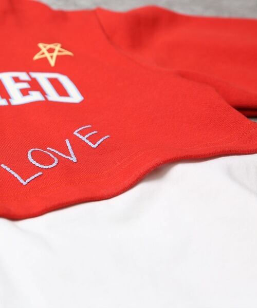 胸元のカレッジ風ロゴとポップな刺繍モチーフで、カジュアルだけどおしゃれ見え◎