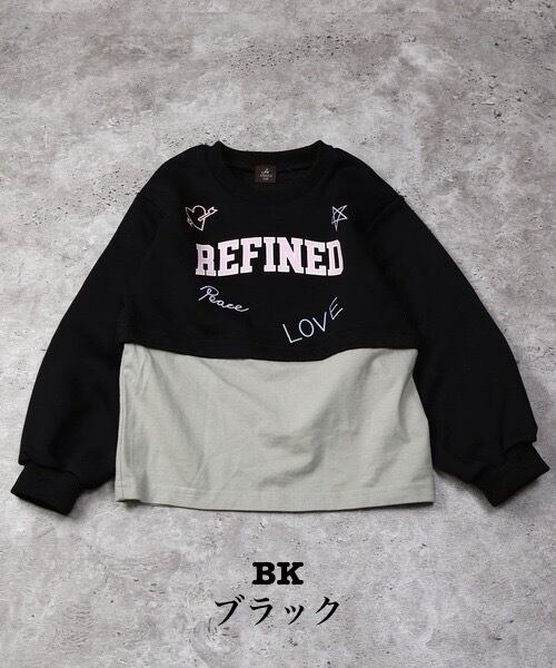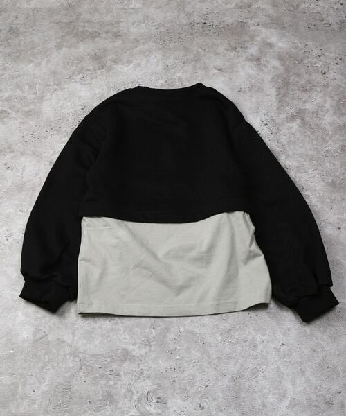 まるでレイヤードしているようなデザインがポイントのドッキングスウェット♪
