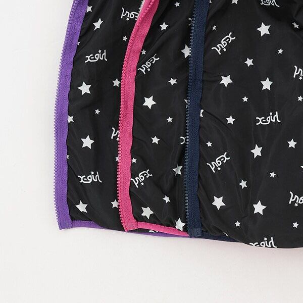 ポケットやパイピングの配色と、裏地のオリジナル星柄がブランドらしさ満点。