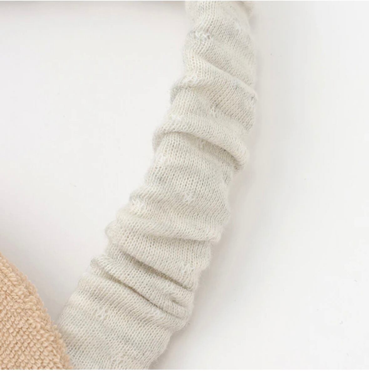 首周りにシャーリングゴムをほどこし、ゆったりとしたつけ心地を実現しました。